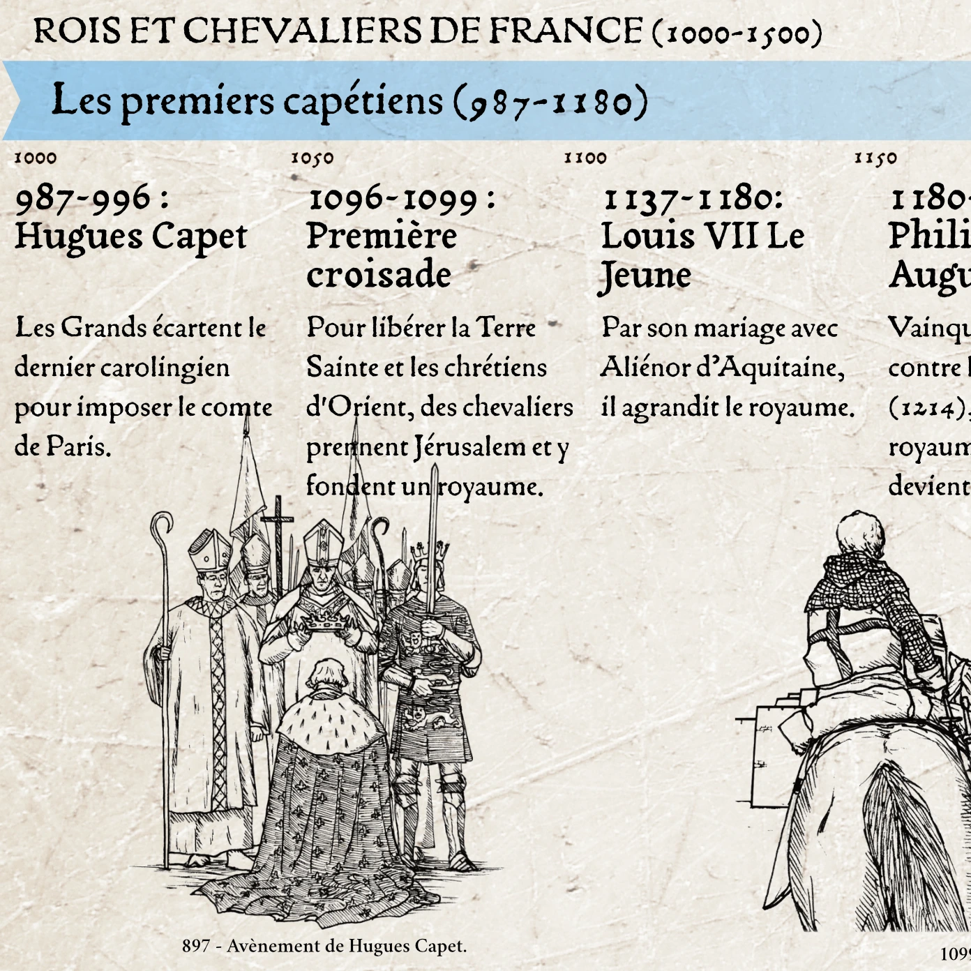 Les Capétiens et la Féodalité : Renforcement du pouvoir royal avec les dynasties capétienne et valoisienne, et la construction de l’identité française malgré des périodes de conflits comme la Guerre de Cent Ans (1337-1453).